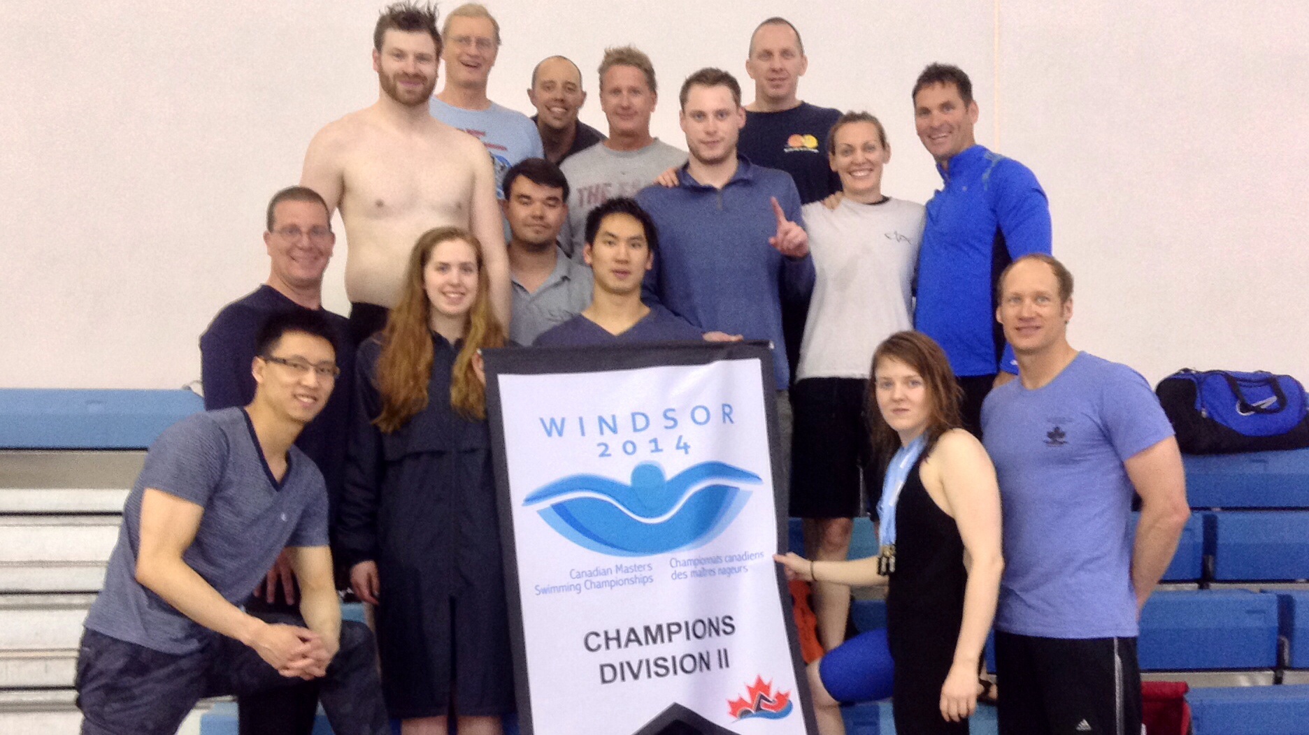Pictured are Jeff Lam, Barry Lewis, Mike Vanden Ham, Morven Burch, Dave Ellis, Mat Mossey (Coach), Baerach Anderson, Tim Floyd, Victor Cheung, George Dal Bello, Scott Summers, Michelle MacWhirter, Tonya Chrystian, Jamie Cleveland, and Barry Saretsky.