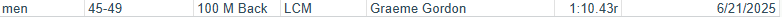 Graeme Gordon broke a record at last year’s Summer Solstice meet (June 21, 2025) that wasn’t updated until now. Congratulations Graeme!