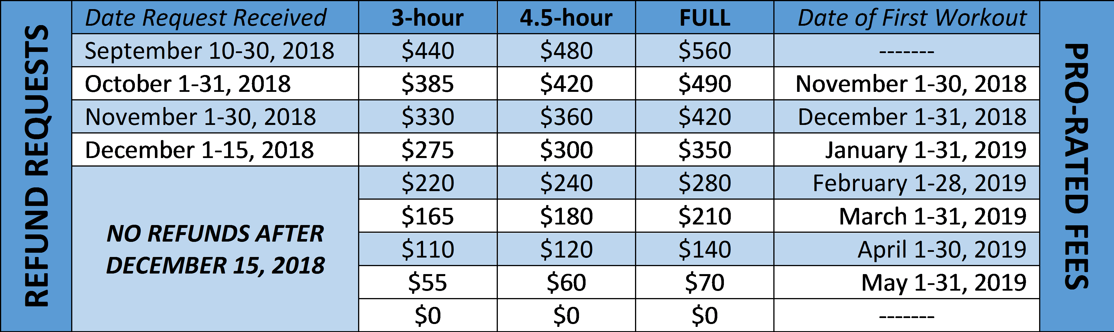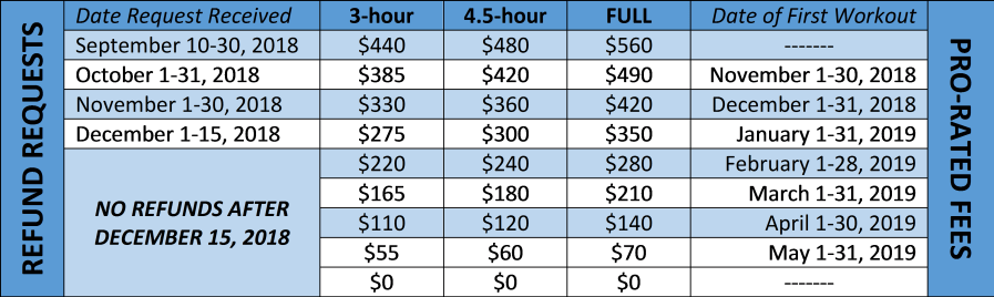 Pro-Rated Fee and Refund Table – 2018-19